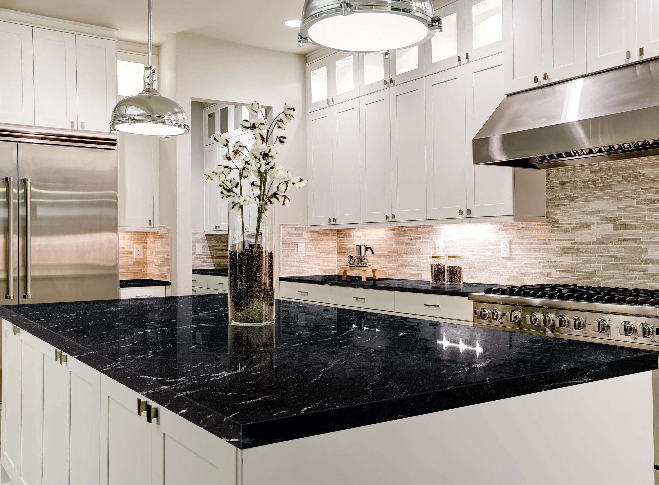 Fons negre amb un vetejat irregular en gris cendra. Densitat: 2.67 Recomanat per taulells: SÍ