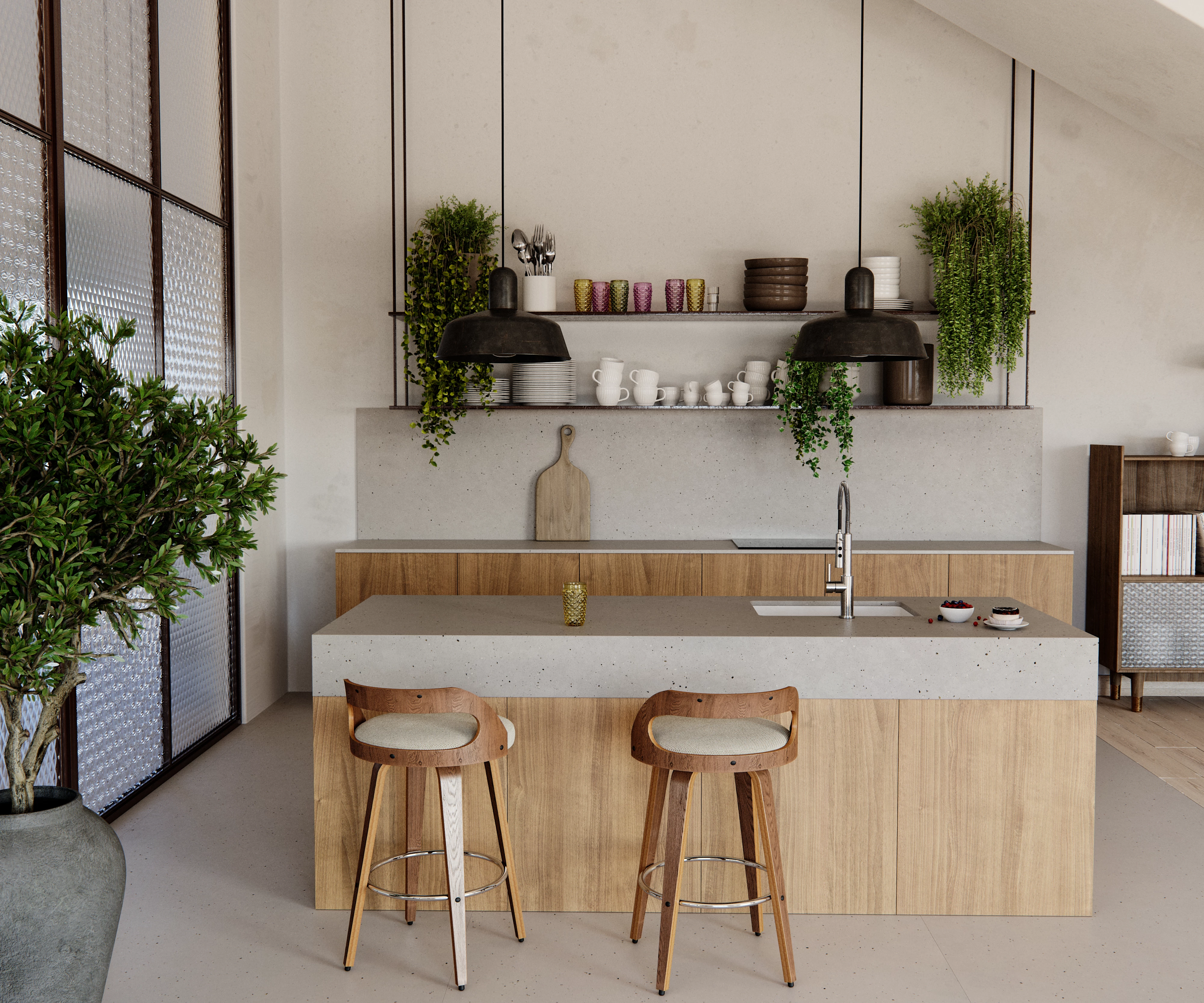 El tono gris de Concrete Pulse es perfecto para interiores eclécticos en los que ayuda a crear un vibrante espectáculo de contrastes.