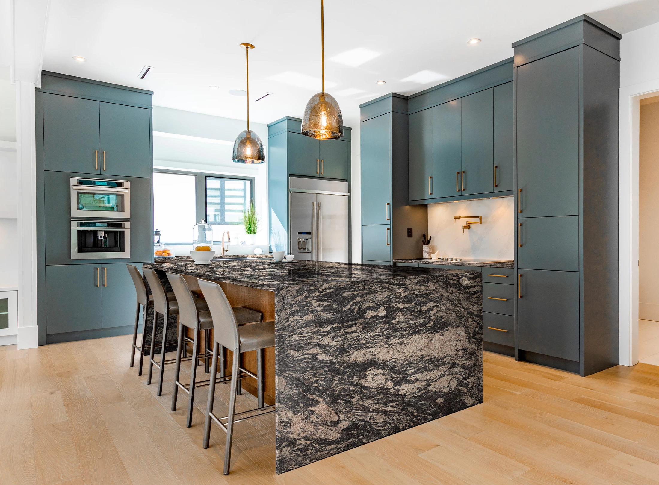 Espectacular composición visual con marrones vivos recorriendo un fondo negro e intenso, para encimeras que dejan huella.
