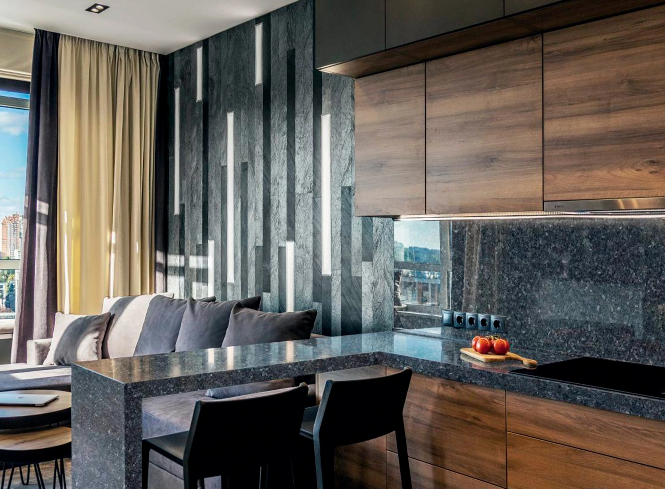 Un clásico grisáceo que nunca defrauda por su elegancia y brillo de sus reflejos azulados a la vez que resuelve con excelencia su funcionalidad como encimera.
